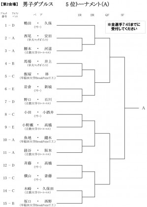 男子ダブルス5位トーナメントA 2日目組み合わせ